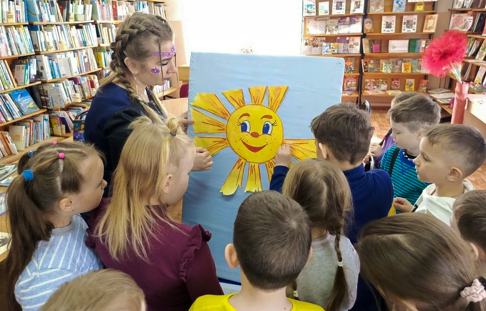 Квест проходил на четырех станциях, расположенных в разных залах библиотеки. На каждой станции детям предстояло выполнить задание, чтобы вернуть один из солнечных лучей.